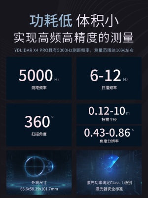 YDLIDAR X4 Pro激光雷达传感器ROS2机器人建图导航定位测距扫描仪