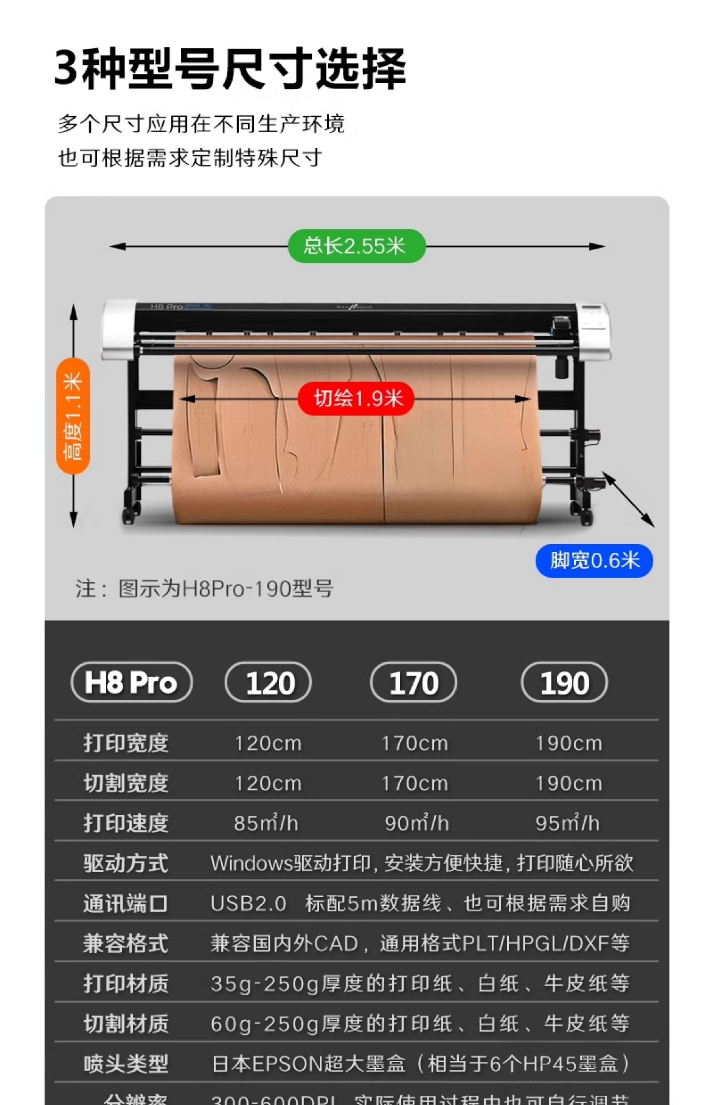 H8Pro-190 实际切绘1.9米