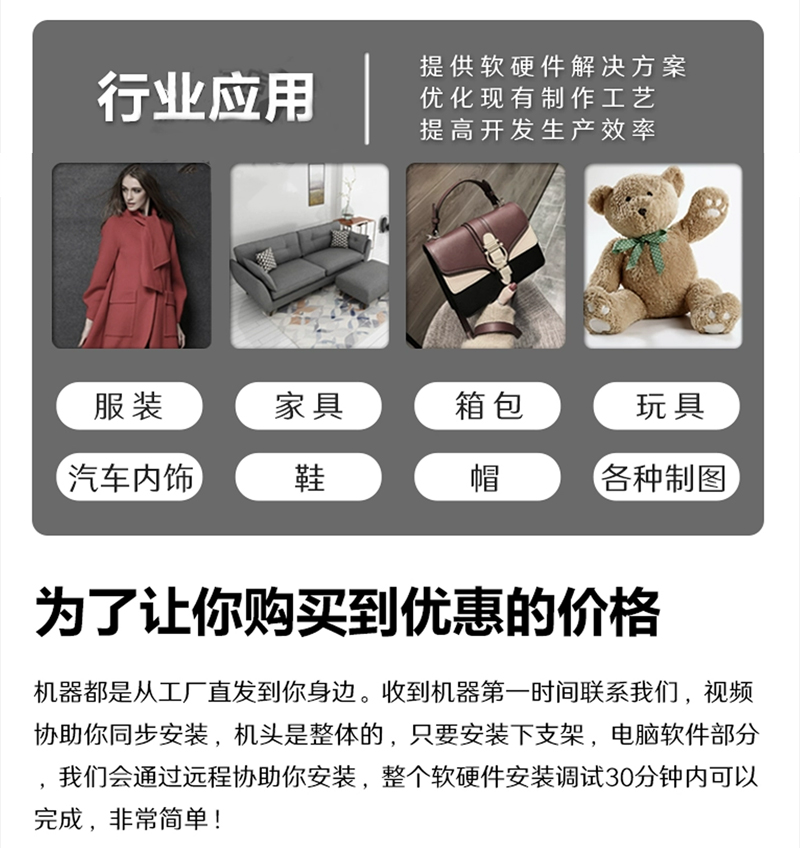 行业应用:服装、家具、箱包、玩具、广告、汽车内饰