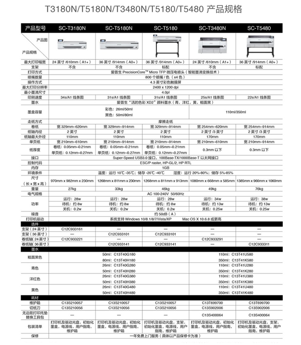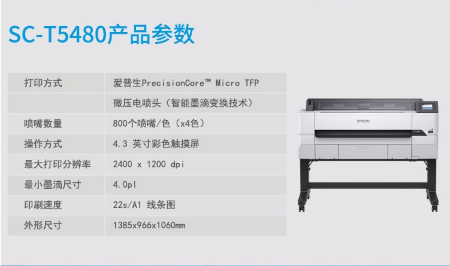 商品名称:爱普生SC-T3180 T3480 T5180 5480 5485DM绘图仪彩色喷墨打印机