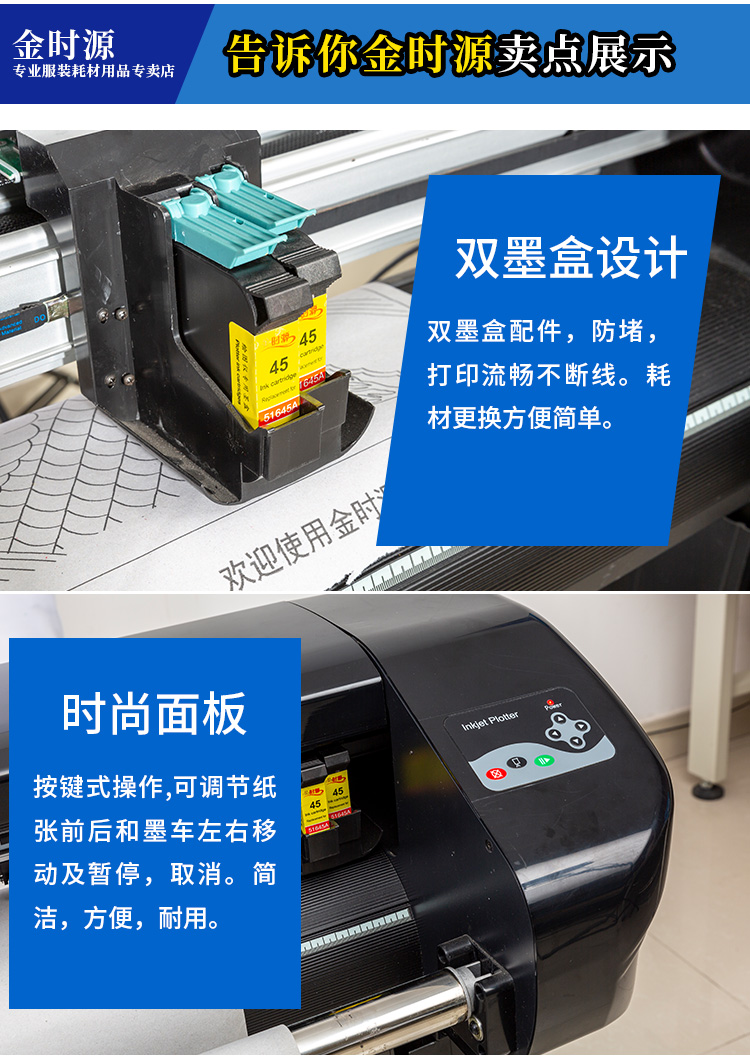 商品名称:金时源喷墨 绘图仪套装 CAD打印机 排版机 豪华双喷机 打板定制