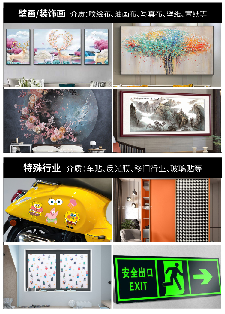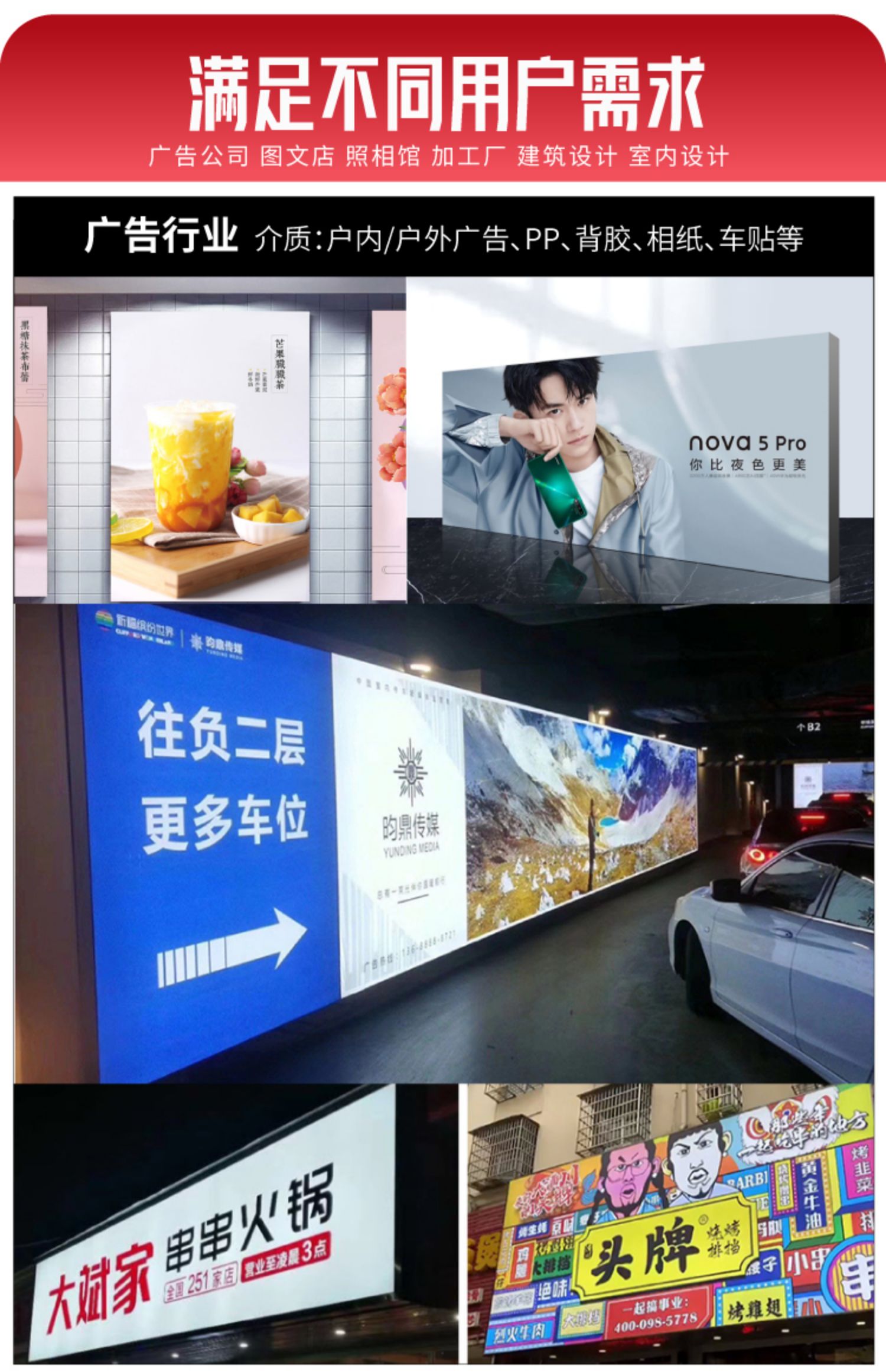 介质材料:相纸、画布、车贴、背胶、反光材料等