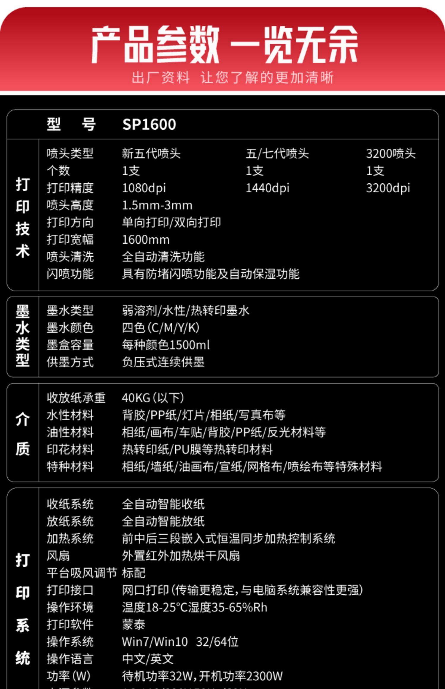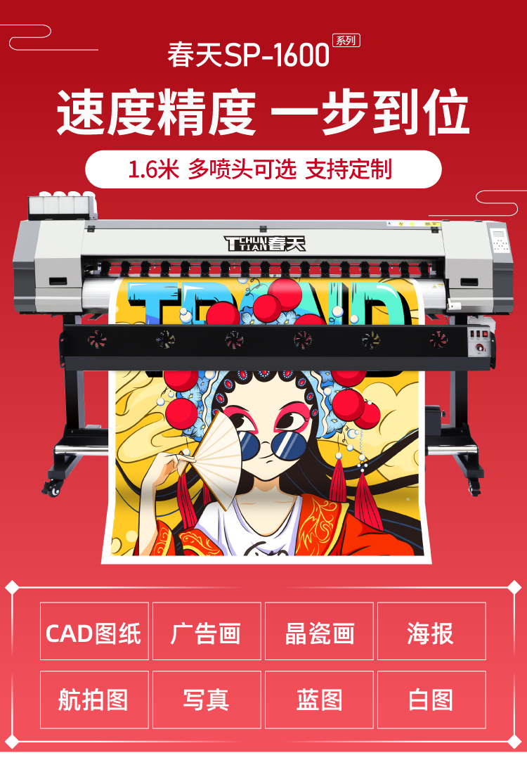 商品名称:TCHUNTIAN春天压电写真机SP1600户外高精度绘图仪1.6米写真喷绘一体机高速户内广告打印机新五代3200单双头