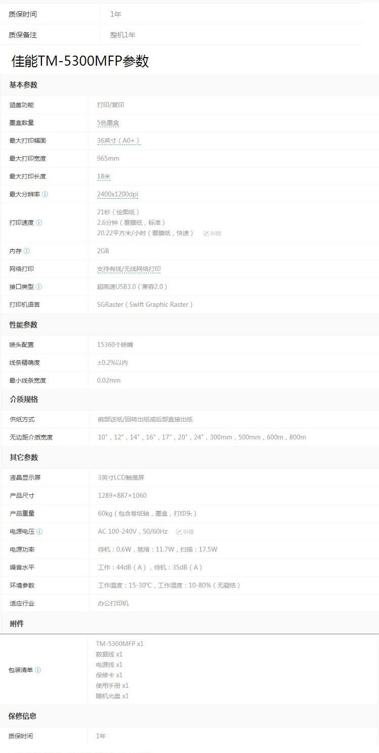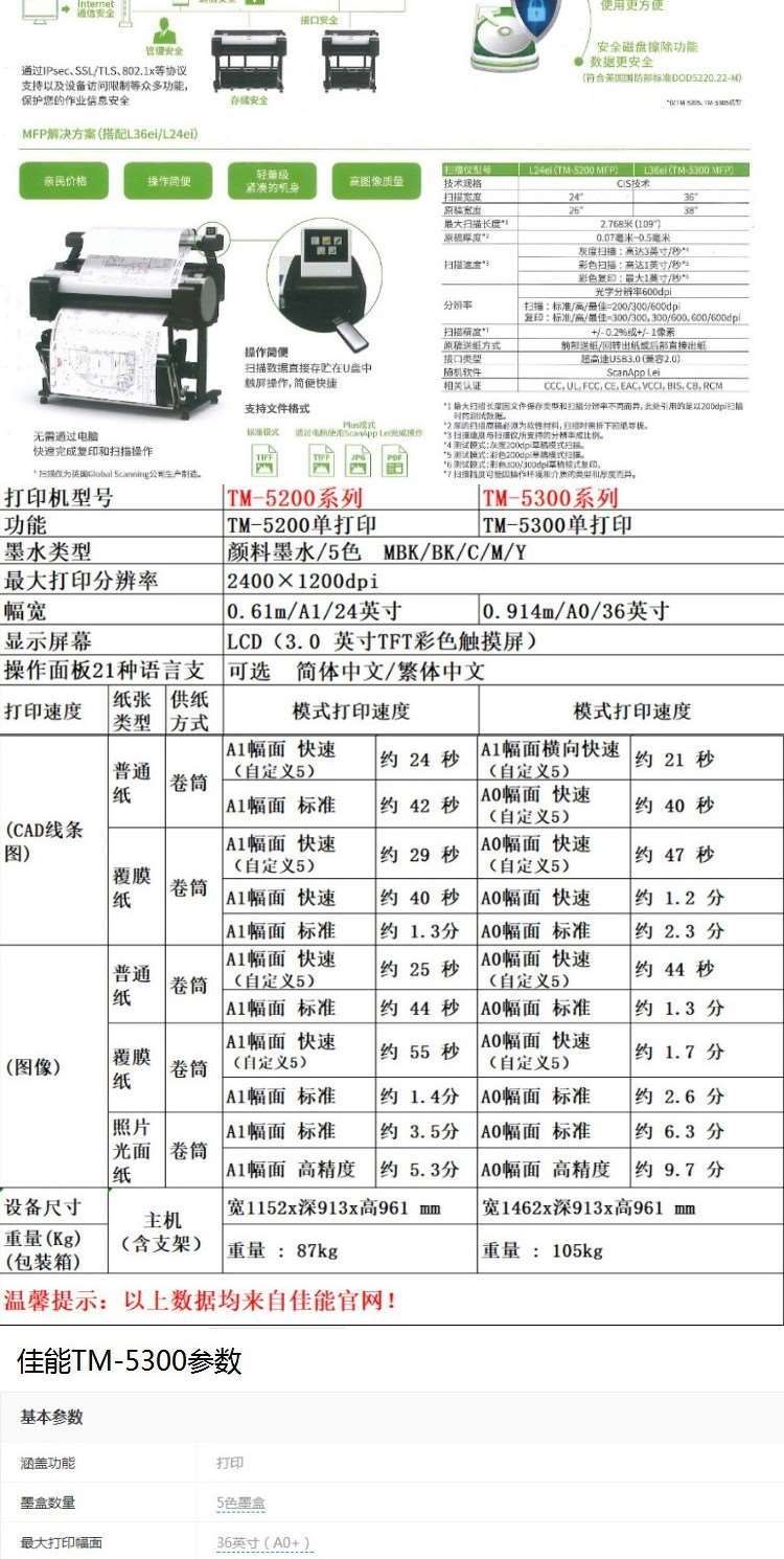 商品名称:佳能TM-5300 TM5200绘图仪 A1/A0 CAD工程图/海报/GIS地图打印机