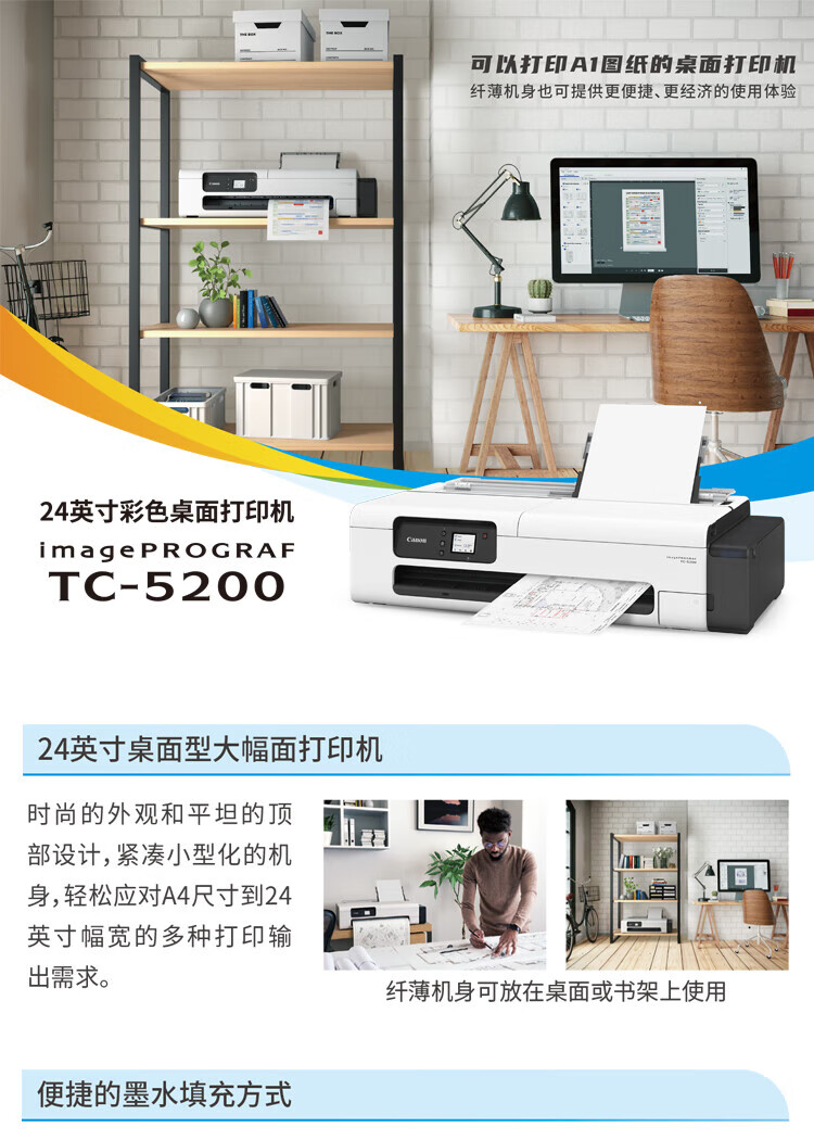 佳能TC-5200/5200M绘图仪墨仓式A2A1打印机蓝图白图机械图效果图
