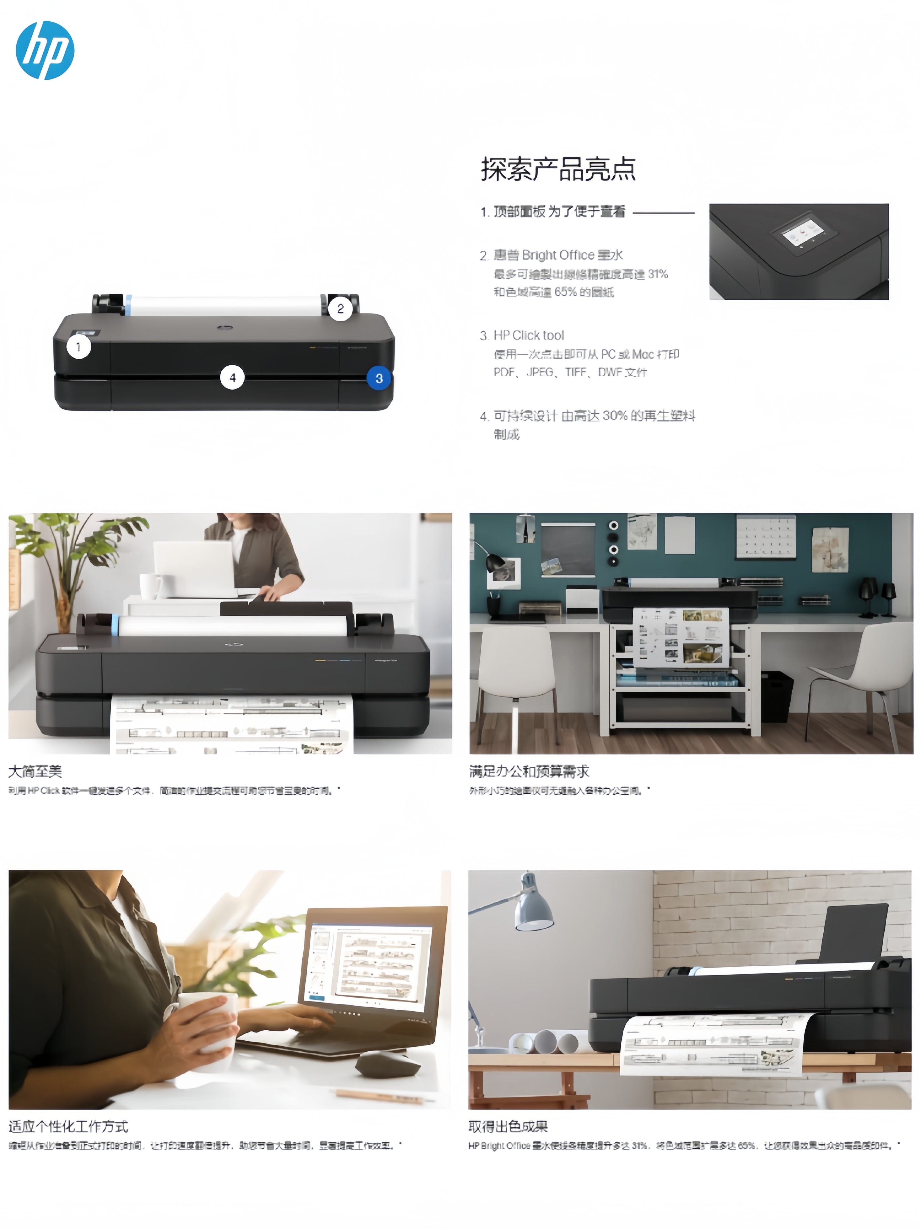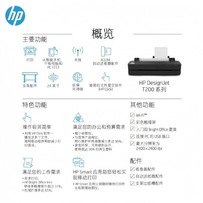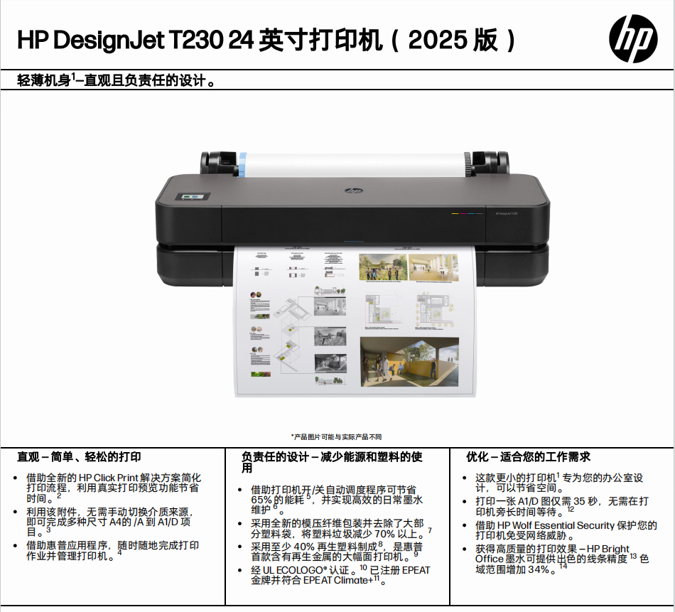 惠普T230 T250 a1桌面型绘图仪a2打印机 地图打印 CAD蓝图纸彩色