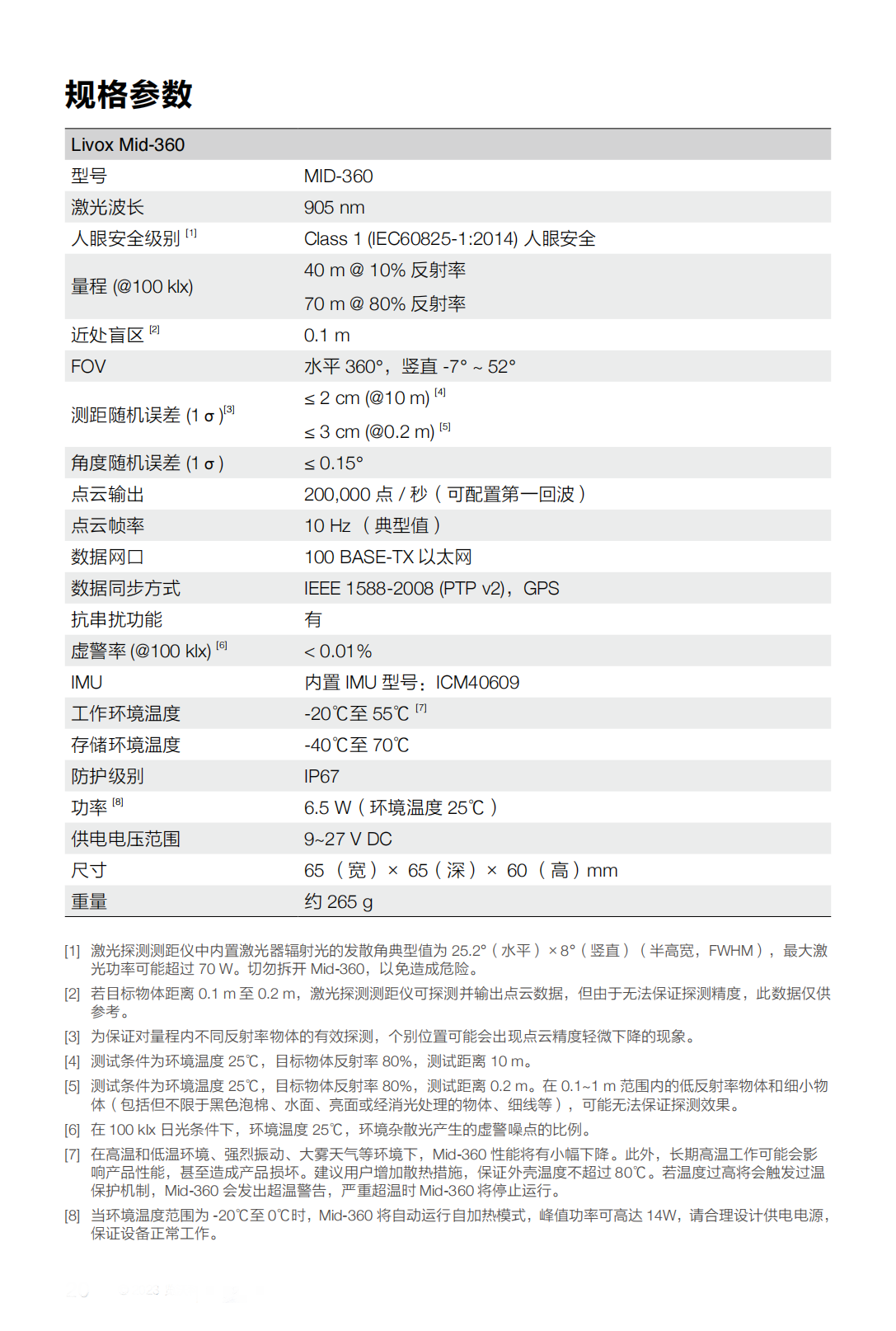 商品名称:激光雷达 mid-360 livox览沃激光探测测距仪