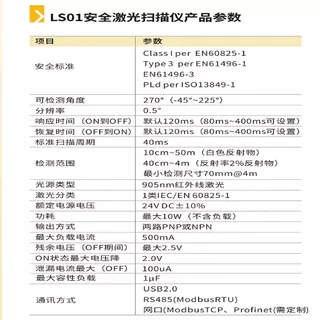 商品名称:全新原装正品施莱格LS01安全激光(雷达)扫描仪270度