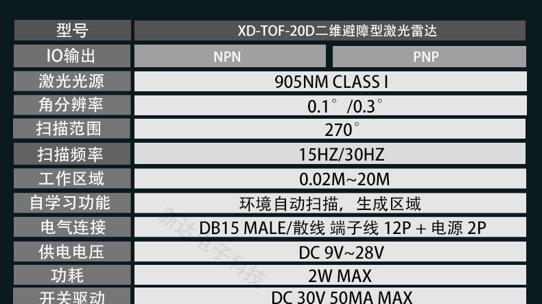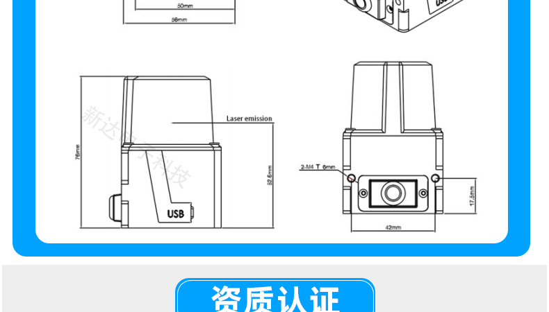 商品名称:AGV避障工程车工业区域防撞叉车20米传感器激光雷达扫描仪CYNDAR