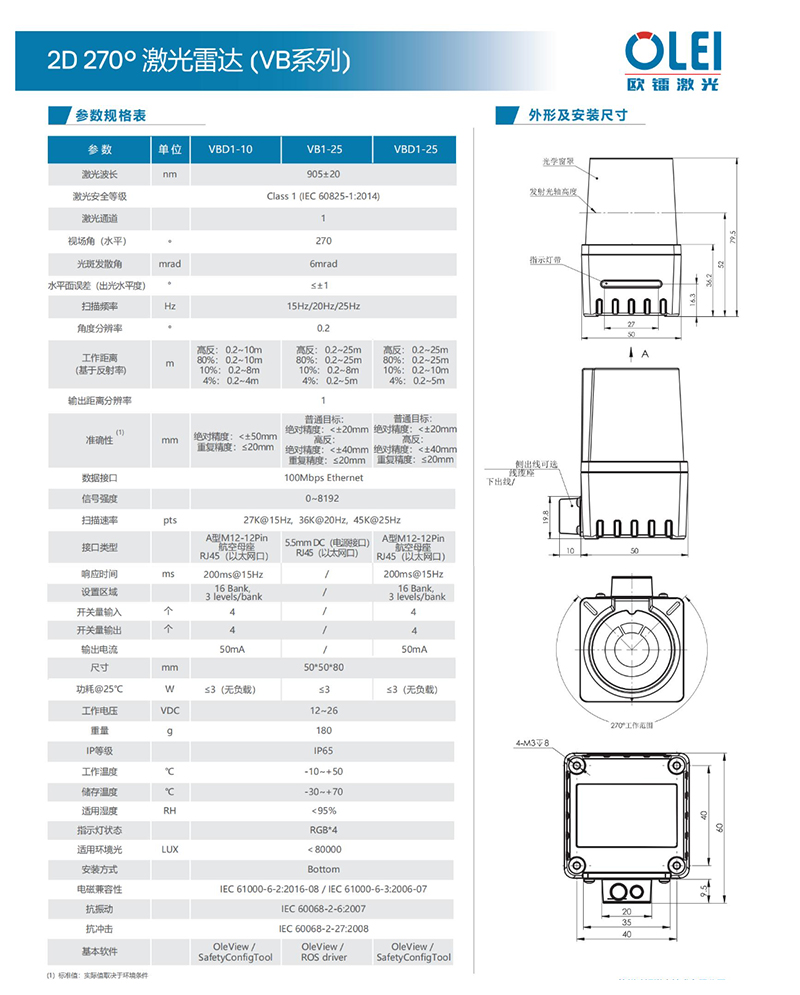 商品名称:欧镭OLEI激光雷达 VBD1-10 测距传感器 扫描仪 原装正品