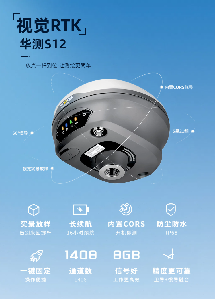 华测RTK测量仪工程GPS测绘仪器视觉放样S12/S15高精度定位惯导S10
