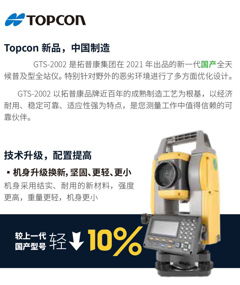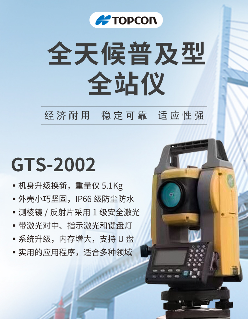 商品名称:新款日本拓普康全站仪GTS-2002免棱镜400米 激光对中工程测量仪器